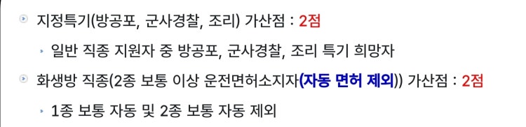 운전면허는 차량운전 직종일때 자격증 점수 적용.(화생방 직종은 가사점으로 적용)